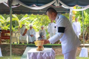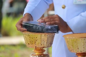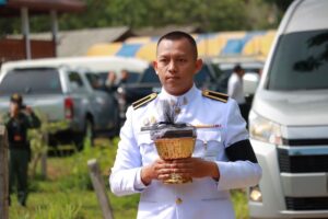 ขณะที่มีการอัญเชิญดินพระราชทานถึงบริเวณพิธี ญาติและข้าราชการตั้งแถวรับดินพระราชทาน โดยเจ้าหน้าที่ อัญเชิญดินพระราชทานวางบนหลุมฝังศพผู้วายชนม์ ผู้นำศาสนาอ่านฟาตีฮะ ร่วมสวดดูอาร์ และผู้เข้าร่วมในพิธีต่างยืนสงบนิ่งเพื่อไว้อาลัยแก่ผู้วายชนม์ โดยมี นางสาว ตัสนีม หะยีเลาะ บุตรสาว อ่านสำนึกในพระกรุณาธิคุณ แด่ผู้วายชนม์ และนางศศิธร หะยีเลาะ ภรรยา เป็นผู้อ่านประวัติผู้วายชนม์ ท่ามกลางความปลาบปลื้มแด่ญาติและครอบครัวที่ต่างซาบซึ้งในพระมหากรุณาธิคุณ ที่พระบาทสมเด็จพระปรเมนทรรามาธิบดีศรีสินทร มหาวชิราลงกรณ พระวชิรเกล้าเจ้าอยู่หัว ทรงมีต่อครอบครัวผู้วายชนม์