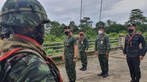 วันที่ 26 ต.ค. 63 เวลา 13.30 น. ที่ บริเวณท่าข้าม บาโอ๊ะ อ.แว้ง จ.นราธิวาส พลตรีศานติ ศกุนตนาค ผู้บัญชาการกองกำลังเทพสตรี ตรวจเยี่ยมการทำงานกำลังป้องแนวชายแดนไทย- มาเลเซีย ในการเฝ้าระวังสกัดกั้น โรคโควิด 19 และการลักลอบขนสิ่งผิดกฎหมาย โดยเฉพาะยาเสพติด หลังจากสัปดาห์ที่ผ่านมา ผู้บัญชาการทหารบก ได้ลงมาตรวจเยี่ยมตามแนวชายแดน พื้นที่ภาคใต้ โดยบริเวณท่าข้าม บ้านบาโอ๊ะ ต.โก๊ะจูด อ.แว้ง จ.นราธิวาส ถือเป็นจุดล่อแหลม เนื่องจากเป็นส่วนที่แคบที่สุดของลำน้ำสุไหงโก-ลก สามารถข้ามไปมาได้โดยสะดวก ปัจจุบัน มีร้อยป้องกันชายแดนที่ 1 ทำหน้าที่เฝ้าระวังดูแลพื้นที่ โดยใช้ชุดปฏิบัติการจรยุทธ์ จำนวน 7 ชุด เฝ้าตรวจ เฝ้าระวัง ลาดตระเวนเคลื่อนไหว ตลอด 24 ชม. เสริมด้วยกำลังเจ้าหน้าที่ทหารพราน และชุดเฝ้าตรวจชายแดน ของ ตชด. นอกจากนี้ยังมี Active Finding Team จากหน่วยเฉพาะกิจนราธิวาส ร่วมกับภาคประชาชนในพื้นที่เข้ามาช่วยเสริม ให้ความรู้ สร้างความเข้าใจ เป็นหูเป็นตาดูแลในพื้นที่ด้านใน เพื่อไม่ให้มีการหลุดลอดเข้าไปยังพื้นที่ได้