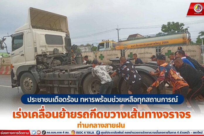 เมื่อวันที่ 19 กรกฎาคม 2566 เวลา 16.00 น. ที่บริเวณสี่แยกคูหา อำเภอรัตภูมิ จังหวัดสงขลา เกิดเหตุรถหัวลากบรรทุกขนาดใหญ่ จอดเสียกีดขวางเส้นทางการจราจร ประกอบกับมีฝนตก ทำให้ประชาชนที่สัญจรไปมาเคลื่อนตัวได้ช้า ติดขัดหลายกิโลเมตร ซึ่งขณะนั้นกำลังพล สังกัด กรมทหารราบที่ 152 อยู่ในระหว่างเดินทางกลับ จากปฏิบัติราชการในพื้นที่จังหวัดสระบุรี พบเห็นรถจอดเสียกีดขวางการจราจรอยู่ จึงให้การช่วยเหลือในการเคลื่อนย้ายรถคันดังกล่าว ออกจากช่องทางจราจรเพื่อให้รถประชาชนที่สัญจรไปมาได้สัญจรสะดวกขึ้น