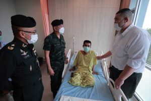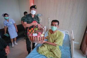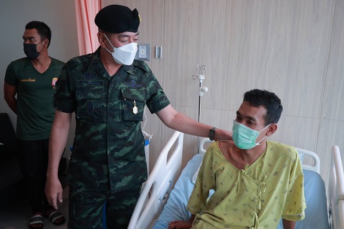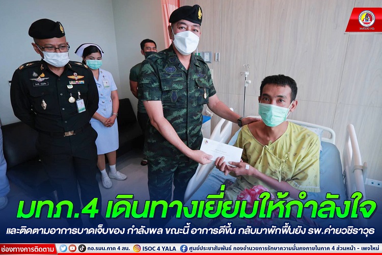 ทั้งนี้ แม่ทัพภาคที่ 4 ได้พุดคุย ให้กำลังใจ อส.ทพ.อาสือรี บูงอตันหยง กล่าวขอบคุณที่ปฏิบัติหน้าที่ดูแลประชาชน ดูแลประเทศชาติด้วยใจรักจงรัก ภักดี และชื่นชมการปฏิบัติงานที่ผ่านมาของกำลังพล พร้อมกันนี้ ได้สร้างความเชื่อมั่นให้แก่ครอบครัวของกำลังพล ว่า กองทัพภาคที่ 4 จะดูแลเรื่องสิทธิ สวัสดิการอย่างเต็มความสามารถ โดยเฉพาะการดูแล ครอบครัวในการเดินทางมาเยี่ยมให้กำลังใจผู้ได้รับบาดเจ็บ ทั้งนี้โรงพยาบาลค่ายวชิราวุธเตรียมแผน ในการทำขาเทียมใส่ให้กับ อส.ทพ.อาสือรี บูงอตันหยง เพื่อให้ได้กลับมาดำเนินชีวิตได้ตามปกติ ซึ่งหากมีสิ่งหนึ่งสิ่งใดที่ต้องการความช่วยเหลือ หรือเป็นสิ่งที่กองทัพภาคที่ 4 สามารถเร่งดำเนินการช่วยได้ ให้บอกกล่าวกับผู้บังคับหน่วยได้เลย ครอบครัวกองทัพบกจะไม่ทิ้งใครไว้ข้างหลัง