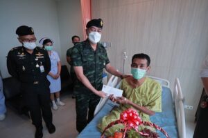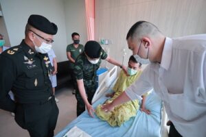 วันนี้ 21 กรกฎาคม 2566 เวลา 10.00 น. ณ โรงพยาบาลค่ายวชิราวุธ ตำบลปากพูน อำเภอเมือง จังหวัดนครศรีธรรมราช พลโท ศานติ ศกุนตนาค แม่ทัพภาคที่ 4/ ผู้อำนวยการรักษาความมั่นคงภายในภาค 4 เยี่ยมให้กำลังใจ และติดตามอาการ ของ อส.ทพ.อาสือรี บูงอตันหยง กำลังพล หน่วยเฉพาะกิจกรมทหารพรานที่ 48 ซึ่งได้รับบาดเจ็บสาหัด จากเหตุคนร้ายลอบวางระเบิด ชุดปฏิบัติการพิทักษ์พื้นที่ กองร้อยทหารพรานที่ 4812 ในพื้นที่อำเภอเจาะไอร้อง จังหวัดนราธิวาส เมื่อวันที่ 10 มิถุนายน 2566 ภายหลังจาก อส.ทพ.อาสือรี บูงอตันหยง ได้รับการผ่าตัดขาเหนือเข่าทั้งสองข้าง และรับการรักษาตัวจนอาการพ้นขีดอันตราย จากโรงพยาบาลสงขลานครินทร์ อำเภอหาดใหญ่ จังหวัดสงขลา กองทัพภาคที่ 4 ได้ส่งตัวกลับมาพักฟื้นยังโรงพยาบาลค่ายวชิราวุธ เตรียมใส่ขาเทียมหลังบาดแผลเข้าที่