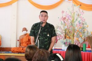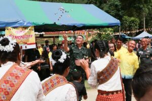 พลโท ศานติ ศกุนตนาค แม่ทัพภาคที่ 4 / ผู้อำนวยการรักษาความมั่นคงภายในภาค 4 กล่าวพบปะพี่น้องประชาชนว่า ดีใจที่ได้มาร่วมประเพณี ร่วมกิจกรรม กับพี่น้องประชาชนในพื้นที่ตำบลบ้านแหร อำเภอธาร จังหวัดยะลา ทุกท่านทราบกันดีว่าในพื้นที่ตำบลบ้านแหรมีประชากรไม่มากนัก แต่ในวันนี้ได้เห็นพี่น้องประชาชนร่วมกัน สามัคคีกันในการจัดงานทอดผ้าป่าสามัคคี ไม่ว่าจะเป็นพี่น้องชาวไทยพุทธ และพี่น้องมุสลิมที่เข้ามาช่วยกันในการจัดงานในครั้งนี้ ได้เห็นความร่วมมือกัน อยู่ด้วยกันแบบสังคมพหุวัฒนธรรม ในระยะเวลาที่ได้มาอยู่ร่วมกัน มีทั้งสูญเสีย บาดเจ็บ ไม่ว่าจะเป็นพี่น้องประชาชนหรือเจ้าหน้าที่ทหาร ตำรวจ ฝ่ายปกครอง แต่ในปัจจุบันความเป็นอยู่ของพี่น้องประชาชนเริ่มดีขึ้นตามลำดับ สถานการณ์ในพื้นที่เริ่มคลี่คลายลงไป จะเห็นได้ว่าพี่น้องประชาชนได้ออกมาทำกิจกรรมในแต่ละพื้นที่คึกคัก และอีกไม่กี่วันก็จะถึงวันเข้าพรรษาของชาวไทยพุทธในห้วงไกล้จะถึงพี่น้องประชาชนทุกศาสนาที่อยู่ในพื้นที่จะอยู่อย่างมีความสุข หากมีสิ่งใดให้ทางกองอำนวยการรักษาความมั่นคงภายในภาค 4 ส่วนหน้าช่วยเหลือ ยินดีที่จะช่วยเหลือพี่น้องประชาชนเพื่อความสุขและให้ประชาชนอยู่อย่างปลอดภัย