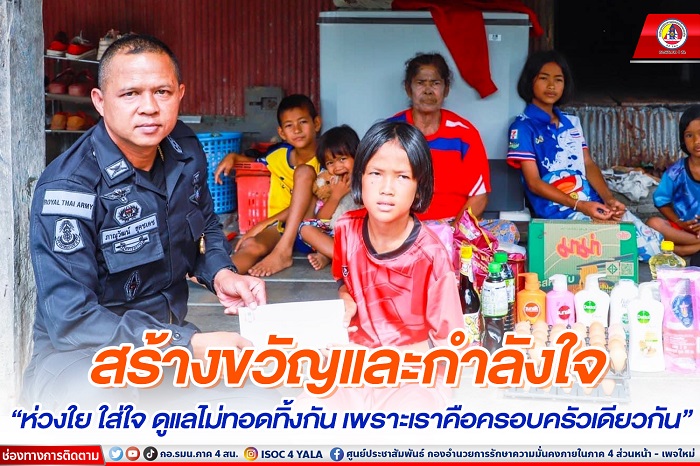 เมื่อวันที่ 23 กรกฎาคม 2566 เวลา 09.30 น. ณ บ้านเลขที่ 47 หมู่ที่ 7 ตำบลระโนด อำเภอระโนด จังหวัดสงขลา และบ้านเลขที่ 16/4 หมู่ที่ 6 ตำบลแดนสงวน อำเภอระโนด จังหวัดสงขลา พันเอก ภาณุวัฒน์ สุคชเดช ผู้บังคับหน่วยเฉพาะกิจกรมทหารพรานที่ 49 พร้อมด้วย ร้อยตรี สุทธิพงษ์ เพชรอาวุธ ผู้ช่วยหัวหน้านายทหารฝ่ายกำลังพล หน่วยเฉพาะกิจกรมทหารพรานที่ 49 เดินทางเยี่ยมครอบครัวของ อาสาสมัครทหารพราน วิษณุ นวลแก้ว กำลังพลที่เสียชีวิตจากการปฏิบัติหน้าที่ราชการสนามในพื้นที่จังหวัดชายแดนภาคใต้ พร้อมทั้งได้สอบถามความเป็นอยู่และปัญหาของครอบครัว เพื่อเป็นขวัญกำลังใจให้กับครอบครัวของกำลังพลที่เสียสละในการปฏิบัติหน้าที่รับใช้ประเทศชาติ ซึ่งเป็นการให้ความช่วยเหลือดูแลและไม่ทอดทิ้งครอบครัวของกำลังพลที่เสียชีวิตจากการปฏิบัติหน้าที่ นอกจากนี้ ยังได้มอบเงินช่วยเหลือและสิ่งของเครื่องใช้อุปโภคบริโภค และจักรยานแก่ครอบครัวของกำลังพล “เพราะเราคือครอบครัวเดียวกัน”