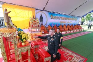 วันที่ 24 กรกฏาคม 2566 เวลา 09.00 น. ที่ พระบรมราชานุสาวรีย์พระบาทสมเด็จพระมงกุฎเกล้าเจ้าอยู่หัว ค่ายวชิราวุธ อำเภอเมือง จังหวัดนครศรีธรรมราช พลโท ศานติ ศกุนตนาค แม่ทัพภาคที่ 4 นำคณะข้าราชการ หน่วยทหารภายในค่ายวชิราวุธ สมาคมแม่บ้านทหารบกสาขากองทัพภาคที่ 4 ร่วมพิธีวันพระราชทานนามค่ายวชิราวุธ ครบรอบ 72 ปี เพื่อน้อมรำลึกในพระมหากรุณาธิคุณของพระบาทสมเด็จพระบรมชนกาธิเบศร มหาภูมิพลอดุลยเดชมหาราช บรมนาถบพิตร ที่ได้ทรงพระกรุณาโปรดเกล้าโปรดกระหม่อมพระราชทานนาม ค่ายวชิราวุธ เพื่อเป็นอนุสรณ์ถวายความระลึกในพระมหากรุณาธิคุณแห่งพระบาทสมเด็จพระมงกุฎเกล้า เจ้าอยู่หัว ที่ทรงวางรากฐานทางการทหาร จัดตั้งหน่วยทหารขึ้นในภาคใต้ บำบัดทุกข์ บำรุงสุข ดูแลรักษาความสงบเรียบร้อยให้แก่พี่น้องประชาชนจวบจนปัจจุบัน