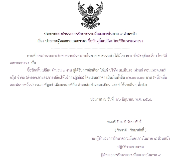 จัดซื้อ จัดจ้างประกาศผู้ชนะการเสนอราคา ประกาศผู้ชนะการเสนอราคา ซื้อวัสดุสิ้นเปลือง โดยวิธีเฉพาะเจาะจง (12,000.00บาท) July 25, 2023 330 Share Facebook Twitter Google+ Telegram LINE