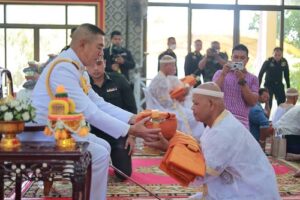 จากนั้น เวลา 13.30 น. พลโท ศานติ ศกุนตนาค แม่ทัพภาคที่ 4 /ผู้อำนวยการรักษาความมั่นคงภายในภาค 4 เดินทาฃต่อไปยังวัดเมืองยะลา ตำบลสะเตง อำเภอเมือง จังหวัดยะลา เป็นประธานในพิธีอุปสมบทหมู่ เฉลิมพระเกียรติ สมเด็จพระนางเจ้าสิริกิติ์ พระบรมราชินีนาถ พระบรมราชชนนีพันปีหลวง ประจำปี 2566 มีผู้เข้าร่วมอุปสมบท จำนวน 11 ราย ร่วมสืบทอดประเพณีวัฒนธรรมอันดีงาม โดยหลังจากบรรพชาอุปสมบทแล้วจะนิมนต์ไปจำพรรษา ณ วัดที่ขาดแคลนพระในพื้นที่ เป็นระยะเวลา 3 เดือน