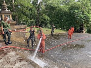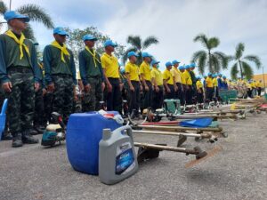 นำเครื่องตัดหญ้าพร้อมอุปกรณ์ ร่วมกันพัฒนาปรับปรุงภูมิทัศน์ พุทธมณฑลนราธิวาส (วัดเขากง) เพื่อเป็นการบำเพ็ญสาธารณประโยชน์ ทำนุบำรุงศาสนสถานอันเป็นที่ยึดเหนี่ยวจิตใจของพุทธสาสนิกชน ตลอดจนยังเป็นการแสดงถึงความรัก ความสามัคคี ความร่วมมือร่วมใจ ในการพัฒนาสภาพแวดล้อมและความเป็นอยู่ของชุมชนให้น่าอยู่น่าอาศัย อันจะนำไปสู่การพัฒนาที่ยั่งยืนสืบไป