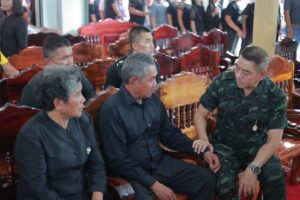 วันนี้ (27 กรกฎาคม 2566) เวลา 17.00 น. ที่ วัดทุ่งยาว ตำบลชุมพล อำเภอศรีนครินทร์ จังหวัดพัทลุง ได้จัดให้มีพิธีรดน้ำเคารพศพ สิบเอก บุญฤทธิ์ เกตุชู สังกัดหน่วยเฉพาะกิจกรมทหารราบที่ 25 ที่ได้เสียชีวิตจากเหตุการณ์ต่อสู้กับคนร้ายเป็นเหตุให้จมน้ำหายไประหว่างเข้าสกัดจับขบวนการลักลอบขนยางพาราแผ่นดิบผิดกฎหมาย ในพื้นที่บ้านมัดออก รอยต่อระหว่าง หมู่ที่ 5 บ้านหาดจิก กับ หมู่ที่ 10 บ้านหลุมพอล่าง ตำบลปากจั่น อำเภอกระบุรี จังหวัดระนอง ซึ่งเป็นเขตแนวชายแดนลำน้ำกระบุรี เมื่อวันที่ 23 กรกฎาคม 2566 และจนกระทั่งมาพบศพในวันที่ 26 กรกฎาคม 2566 ที่ผ่านมา หลังกำลังผสมทหารตำรวจฝ่ายปกครอง พร้อมชาวบ้านปากจั่น ออกระดมค้นหาตลอด 3 วัน 3 คืน นำกลับภูมิลำเนา จัดกองเกียรติยศและพิธีรดน้ำเคารพศพอย่างสมเกียรติ ก่อนจะมีพิธีพระราชทานเพลิงศพในวันที่ 31 กรกฎาคมนี้
