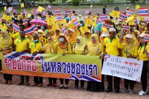 วันนี้ 27 ต.ค. 2563 เวลา 14.00 น. ณ สวนหลวงรัชกาลที่ 5 อำเภอเมือง จังหวัดนราธิวาส นายสมบูรณ์ จิตรเพ็ญ ประธานองค์กรภาคประชาชนเพื่อสันติสุข และเศรษฐกิจพอเพียงจังหวัดนราธิวาส นำเครือข่ายมวลชน ประกอบด้วย องค์กรภาคประชาชนเพื่อสันติและเศรษฐกิจพอเพียง (เสื้อเขียว), กลุ่มผู้ได้รับผลกระทบจากเหตุการณ์ความไม่สงบในพื้นที่, เครือข่ายญาลันนันบารู, และโฆษกชาวบ้าน จำนวนกว่า 500 คนพร้อมใจกันสวมเสื้อเหลือง ร่วมกิจกรรม “รวมพล มวลชน คนรักสถาบัน” โบกสะบัดธงชาติไทย และร่วมกล่าวปฏิญาณตนแสดงความจงรักภักดีต่อสถาบันหลักของประเทศ พร้อมกันนี้ยังร่วมกันร้องเพลงสรรเสริญพระบารมี และเพลงสดุดีมหาราชา เพื่อแสดงพลังปกป้องสถาบันพระมหากษัตริย์ซึ่งเป็นสิ่งยึดเหนี่ยวจิตใจของประชาชนคนไทยทั้งชาติ