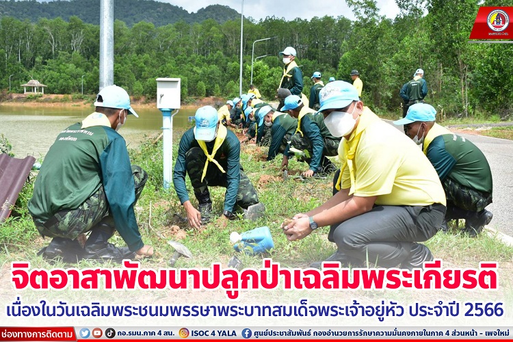 เมื่อวันที่ 28 กรกฎาคม 2566 เวลา 10.30 น. ที่ สวนสาธารณะควนเขาวัง องค์การบริหารส่วนตำบลปลักหนู อำเภอนาทวี จังหวัดสงขลา พันโท นพรัตน์ มหัตเสน ผู้บังคับกองพันทหารราบที่ 3 กรมทหารราบที่ 5 นำกำลังพลจิตอาสาพระราชทานของหน่วย ร่วมกับข้าราชการ ภาครัฐ ภาคเอกชน และประชาชนในพื้นที่ เข้าร่วมกิจกรรมจิตอาสาพัฒนาปลูกป่าเฉลิมพระเกียรติ เนื่องในวันเฉลิมพระชนมพรรษาพระบาทสมเด็จพระเจ้าอยู่หัว ประจำปี 2566 เพื่อแสดงออกถึงความจงรักภักดี และน้อมรำลึกในพระมหากรุณาธิคุณ โดยมี นายเชิดพงษ์ ใจตรง นายอำเภอนาทวี เป็นประธานในพิธีฯ