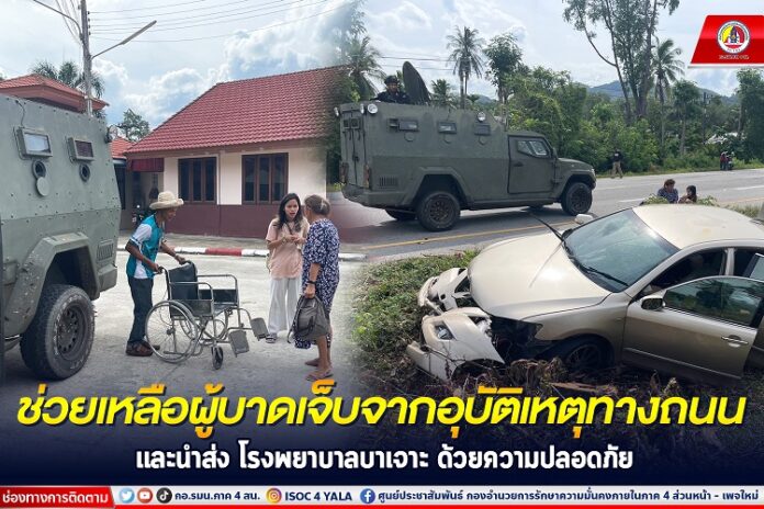 เมื่อวันที่ 28 กรกฎาคม 2566 เวลา 18.00 น. กองร้อยทหารพรานนาวิกโยธินที่ 5 หน่วยเฉพาะกิจนาวิกโยธินกองทัพเรือ พบอุบัติเหตุทางถนนจึงรีบเข้าให้การช่วยเหลืออย่างเร่งด่วน เป็นรถยนต์เก๋ง Toyota ทะเบียน กต 96 ยะลา ซึ่งคนขับเสียหลักตกร่องกลางถนนชนกับตอไม้ บริเวณยูเทิร์นบ้านส้มป่อย อำเภอบาเจาะ จังหวัดนราธิวาส สาเหตุเกิดจากคนขับรถมีอาการหลับใน ทางเจ้าหน้าที่จึงเข้าทำการช่วยเหลือในเบื้องต้น และนำผู้บาดเจ็บส่งโรงพยาบาลบาเจาะ อำเภอบาเจาะ จังหวัดนราธิวาส ด้วยความปลอดภัย