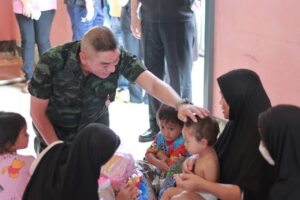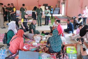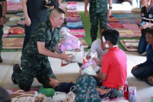 โดยทางกองพลทหารราบที่ 15 กรมทหารราบที่ 151 พร้อมหน่วยทหารพรานในพื้นที่ ได้แก่ หน่วยเฉพาะกิจกรมทหารพรานที่ 45, 46 และ 48 จัดกำลังพลเตรียมสถานที่สำหรับรองรับผู้ประสบภัย ณ ศูนย์กีฬาองค์การบริหารส่วนตำบลมูโนะ เป็นศูนย์พักพิง พร้อมชุดเครื่องนอน จำนวน 100 ชุด เพื่อเป็นที่พักอาศัยชั่วคราวแก่ผู้ประสบภัย รวมทั้งจัดรถครัวสนามและอาหารกล่องไว้บริการอาหารให้กับผู้ประสบภัย เพื่อบรรเทาความเดือดร้อนในขั้นต้น รวมทั้งจัดรถบรรทุกน้ำ และยานพาหนะในการขนย้ายประชาชนพร้อมทรัพย์สิน เพื่ออพยพเข้ามายังสถานที่รับผู้ประสบภัย
