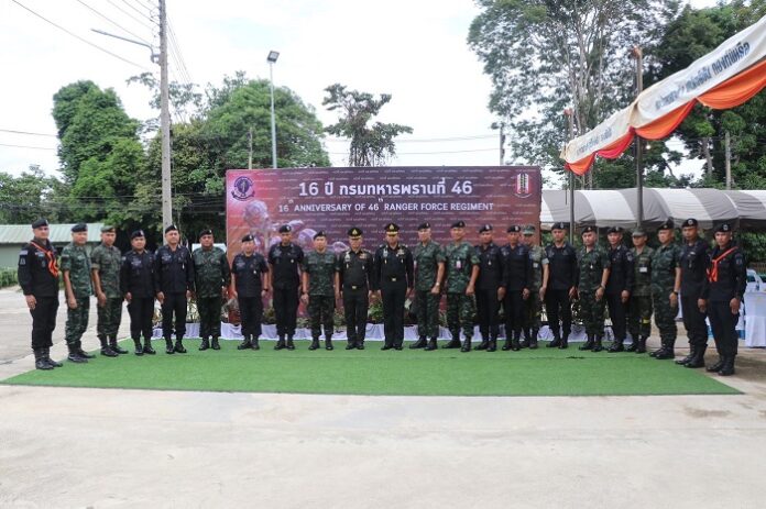 เมื่อวันที่ 31 กรกฎาคม 2566 เวลา 09.30 น. ที่ กรมทหารพรานที่ 46 บ้านค่าย หมู่ที่ 2 ตำบลกะลุวอเหนือ อำเภอเมือง จังหวัดนราธิวาส พันเอก สฐิรพงษ์ อาจหาญ ผู้บังคับกองกำลังทหารพรานจังหวัดชายแดนภาคใต้ พร้อมด้วย พันเอก สิทธิศักดิ์ เจนบรรจง รองผู้บังคับกองกำลังทหารพรานจังหวัดชายแดนภาคใต้ ร่วมในพิธีทำบุญเนื่องในงานวันคล้ายวันสถาปนากรมทหารพรานที่ 46 ครบรอบปีที่ 16 เพื่อเป็นการเชิดชูเกียรติ รำลึกวันสำคัญของหน่วย และบำเพ็ญกุศลให้กับกำลังพลที่เสียชีวิตจากการปฏิบัติหน้าที่ ตลอดจนเสริมสร้างความเป็นสิริมงคลแก่กำลังพล และครอบครัว พร้อมทั้งเพื่อความเป็นสิริมงคลแก่หน่วย เป็นขวัญกำลังใจแก่กำลังพลทุกนายที่ปฏิบัติหน้าที่ในปัจจุบัน ในพิธีมี ผู้บังคับบัญชา หัวหน้าส่วนราชการ ตลอดจนผู้นำในพื้นที่ และกำลังพล เข้าร่วมในพิธีโดยพร้อมเพรียง โดยมี พลตรี ไพศาล หนูสังข์ รองแม่ทัพภาคที่ 4 /รองผู้อำนวยการรักษาความมั่นคงภายในภาค 4 ส่วนหน้า เป็นประธาน