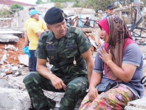 เมื่อวันที่ 31 กรกฎาคม 2566 เวลา 08.30 น. พลตรี เฉลิมพร ขำเขียว ผู้บัญชาการกองพลทหารราบที่ 15 / ผู้บังคับหน่วยเฉพาะกิจนราธิวาส พร้อมกับ คุณสมฤดี ขำเขียว ประธานสมาคมแม่บ้านทหารบก สาขากองพลทหารราบที่ 15 และกำลังพลจิตอาสา ลงพื้นที่เกิดเหตุโกดังเก็บประทัด และดอกไม้ไฟ ระเบิด ในพื้นที่ ตำบลมูโนะ อำเภอสุไหงโก-ลก จังหวัดนราธิวาส จากกรณี เกิดเหตุระเบิดที่โกดังเก็บประทัดและดอกไม้ไฟระเบิด เมื่อวันที่ 29 กรกฎาคม 2566 เวลา 15.10 น. ที่ผ่านมา แรงระเบิดกระจายรัศมีเป็นวงกว้าง ทำให้มีผู้เสียชีวิต และได้รับบาดเจ็บหลายราย บ้านเรือน ทรัพย์สิน และรถยนต์พังเสียหายจำนวนมาก จากเหตุการณ์ดังกล่าว พร้อมสั่งการหน่วยทหารในพื้นที่ เร่งให้ความช่วยเหลือ บูรณาการร่วมกับทุกภาคส่วน เน้นย้ำกำลังพล และเครื่องมือยุทโธปกรณ์ ต้องมีความพร้อม ในการประสานการปฏิบัติตลอด 24 ชั่วโมง โดยข้อมูลล่าสุดนั้น มีผู้เสียชีวิต 9 ราย รอพิสูจน์ฯ 2 ราย และได้รับบาดเจ็บ 111 ราย