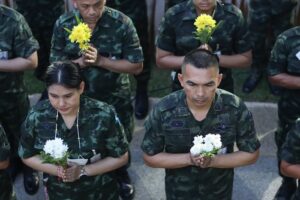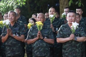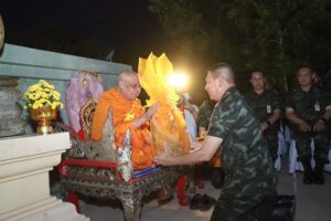 วันนี้ ( 1 สิงหาคม 2566 ) เวลา 19.00 น. ที่เขาพระศรีศากยมุณีพุทธโคดม ค่ายสิรินธร ตำบลเขาตูม อำเภอยะรัง จังหวัดปัตตานี พลโท ศานติ ศกุนตนาค แม่ทัพภาคที่ 4 / ผู้อำนวยการรักษาความมั่นคงภายในภาค 4 นำกำลังพลกองอำนวยการรักษาความมั่นคงภายในภาค 4 ส่วนหน้า ร่วมกันประกอบพิธีเวียนเทียน เนื่องในวันอาสาฬหบูชา ประจำปี 2566 เพื่อน้อมระลึกถึงพระพุทธคุณ พระธรรมคุณ พระสังฆคุณ และยังช่วยชำระล้างจิตใจให้ผ่องใส โดยมี พลตรี ไพศาล หนูสังข์ รองแม่ทัพภาคที่ 4 /รองผู้อำนวยการรักษาความมั่นคงภายในภาค 4 ส่วนหน้า พร้อมด้วยเลขาธิการกองอำนวยการรักษาความมั่นคงภายในภาค 4 ส่วนหน้า, รองเลขาธิการกองอำนวยการรักษาความมั่นคงภายในภาค 4 ส่วนหน้า, ผู้อำนวยการสำนักอำนวยการ, หัวหน้าฝ่ายกิจการพิเศษ พร้อมด้วย กำลังพลภายในกองอำนวยการรักษาความมั่นคงภายในภาค 4 ส่วนหน้า ร่วมในพิธีอย่างพร้อมเพรียง
