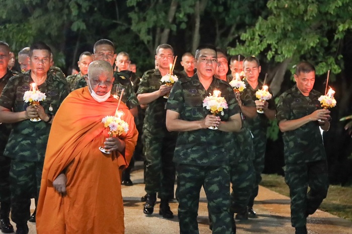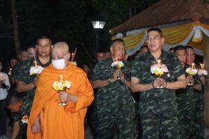 ทั้งนี้ กองอำนวยการรักษาความมั่นคงภายในภาค 4 ส่วนหน้า ได้จัดให้มีพิธีเวียนเทียนในวันอาสาฬหบูชาเป็นประจำทุกปี เพื่อเป็นการปลูกฝังศีลธรรมอันดีงามแก่กำลังพล และส่งเสริมให้กำลังพลได้ปฏิบัติหน้าที่ของพุทธศาสนิกชนที่ดี เพื่อความเป็นสิริมงคลเเก่ชีวิตและน้อมหลักธรรมคำสอนไปประยุกต์ใช้ในการดำเนินชีวิต และปฏิบัติภารกิจหน้าที่การงานให้ประสบความสำเร็จ และเจริญก้าวหน้าสัมฤทธิ์ผลเป็นรูปธรรม ซึ่งสอดล้องกับนโยบายการปลูกฝังและการสร้างเสริมอุดมการณ์ทหารของกองทัพบก “ด้านการพัฒนาคุณธรรม”