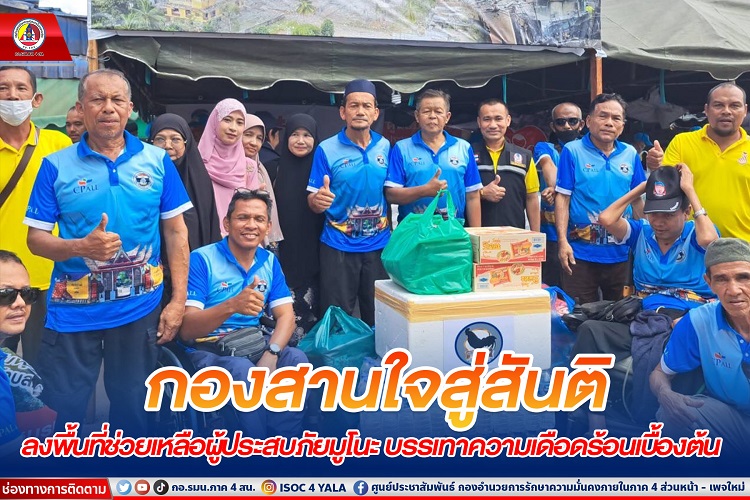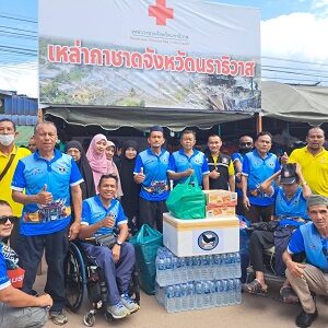 โดยได้มอบสิ่งของเครื่องใช้ที่จำเป็นและไก่กระดูกดำ จำนวน 120 กิโลกรัม ให้กับโรงครัวพระราชทานและโรงครัวเหล่ากาชาดจังหวัดนราธิวาส เพื่อนำไปประกอบเลี้ยงอาหารให้แก่ผู้ประสบภัย รวมถึงนำความห่วงใยจากผู้อำนวยการศูนย์สันติวิธี ให้กับพี่น้องประชาชนที่ได้รับผลกระทบจากเหตุการณ์ในครั้งนี้