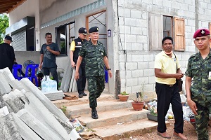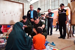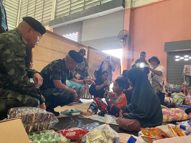 โดยรองแม่ทัพภาคที่ 4 ได้ไปเยี่ยมให้กำลังใจผู้ประสบภัยที่ ศูนย์พักพิงชั่วคราว ณ สนามกีฬาเทศบาลมูโนะ พร้อมพบปะพูดคุยประชาชน สอบถามความเป็นอยู่ พร้อมให้กำลังใจ ระบุ เจ้าหน้าที่พร้อมคอยดูแลและอำนวยความสะดวกให้ตลอด ก่อนจะเดินทางไปยังจุดเกิดเหตุและให้กำลังใจเจ้าหน้าที่ กำชับเจ้าหน้าที่ดูแลตัวเองและอำนวยความสะดวกให้ประชาชนเมื่อมีการร้องขอความช่วยเหลือ ทั้งนี้ยังมีน้ำใจจากผู้มีจิตศรัทธาทยอยนำสิ่งของอุปโภคบริโภคมามอบเพื่อให้ความช่วยเหลืออย่างไม่ขาดสาย