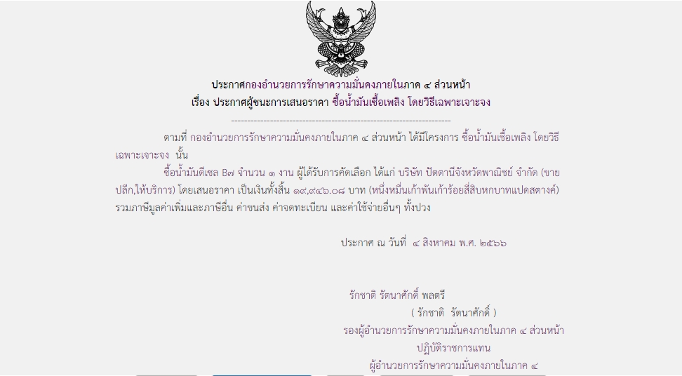 จัดซื้อ จัดจ้างประกาศผู้ชนะการเสนอราคา ประกาศผู้ชนะการเสนอราคา ซื้อน้ำมันเชื้อเพลิง โดยวิธีเฉพาะเจาะจง August 9, 2023 351 Share Facebook Twitter Google+ Telegram LINE