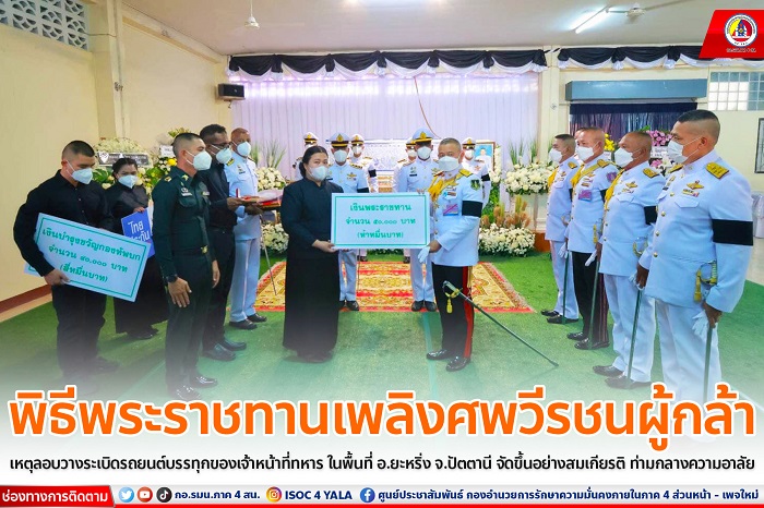 เมื่อวันที่ 8 สิงหาคม 2566 เวลา 15.00 น. ณ วัดบางนรา อำเภอเมือง จังหวัดนราธิวาส พลเอก ณรงค์พันธ์ จิตต์แก้วแท้ ผู้บัญชาการทหารบก เป็นประธานพิธีพระราชทานเพลิงศพ สิบเอก ศุภกร ศิริเสถียร สังกัดกรมทหารราบที่ 151 พลขับชุดยานยนต์ กองบังคับการควบคุมสุริโยทัย ที่เสียชีวิตจากเหตุคนร้ายไม่ทราบกลุ่มและจำนวน ลอบวางระเบิดรถยนต์บรรทุกของเจ้าหน้าที่ทหารกองบังคับการควบคุมสุริโยทัย เดินทางรับสิ่งอุปกรณ์ที่หน่วยเฉพาะกิจอโณทัย บนถนนเส้น 42 บริเวณบ้านตันหยงลากอ อำเภอยะหริ่ง จังหวัดปัตตานี เป็นเหตุให้เจ้าหน้าที่ทหารได้รับบาดเจ็บ 5 นาย เสียชีวิต 1 ราย เหตุเกิดเมื่อวันที่ 3 สิงหาคม ที่ผ่านมา โดยในพิธีพระราชทานเพลิงศพ พลโท ศานติ ศกุนตนาค แม่ทัพภาคที่ 4 / ผู้อำนวยการรักษาความมั่นคงภายในภาค 4 , พลตรี ปราโมทย์ พรหมอินทร์ รองแม่ทัพภาคที่ 4/รองผู้อำนวยการรักษาความมั่นคงภายในภาค 4 ส่วนหน้า , พลตรี เฉลิมพร ขำเขียว ผู้บัญชาการกองพลทหารราบที่ 15/ผู้บังคับหน่วยเฉพาะกิจนราธิวาส , คณะผู้บังคับบัญชาหน่วยขึ้นตรงกองอำนวยการรักษาความมั่นคงภายในภาค 4 ส่วนหน้า , หัวหน้าส่วนราชการ , เจ้าหน้าที่ตำรวจ ตลอดจนคณะญาติ และประชาชนในพื้นที่ ได้เข้าร่วมพิธีเพื่อแสดงความไว้อาลัย