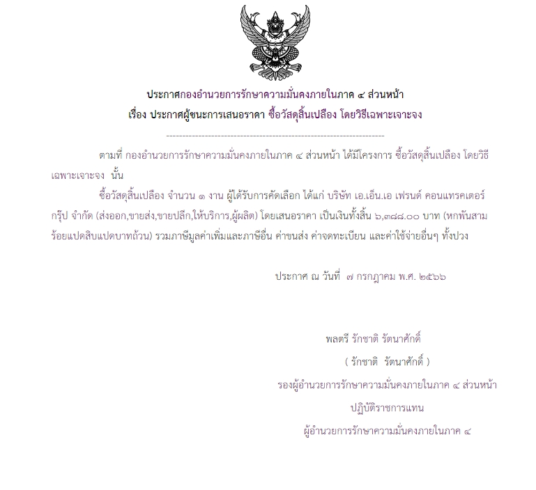 จัดซื้อ จัดจ้างประกาศผู้ชนะการเสนอราคา ประกาศผู้ชนะการเสนอราคา ซื้อวัสดุสิ้นเปลือง โดยวิธีเฉพาะเจาะจง August 9, 2023 467 Share Facebook Twitter Google+ Telegram LINE