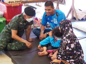 ทั้งนี้ พลตรี เฉลิมพร ขำเขียว กล่าวว่า สืบเนื่อง จาก เหตุโกดังเก็บพรุ และดอกไม้เพลิงระเบิด ในพื้นที่มูโนะ อำเภอสุไหงโก-ลก จังหวัดนราธิวาส เมื่อวันที่ 29 สิงหาคม 2566 ที่ผ่านมา ทำให้เกิดความเสียหายเป็นวงกว้าง พี่น้องประชาชนกว่า 2,513 คนได้รับผลกระทบ บ้านเรือนได้รับความเสียหายกว่า 682 หลังคาเรือน ชาวบ้านได้รับบาดเจ็บ และเสียชีวิต ประชาชนหลายครอบครัวไร้ที่อยู่อาศัย ด้วยความห่วงใย จาก พลโท ศานติ ศกุนตนาค แม่ทัพภาคที่ 4 / ผู้อำนวยการรักษาความมั่นคงภายในภาค 4 ที่มีต่อพี่น้องประชาชนผู้ที่ได้รับผลกระทบจากเหตุการณ์ดังกล่าว จึงได้เดินทางลงพื้นที่ติดตามสถานการณ์ อย่างต่อเนื่อง ซึ่งเมื่อวันที่ 6 สิงหาคม 2566 ที่ผ่านมา พลโท ศานติ ศกุนตนาค แม่ทัพภาคที่ 4 / ผู้อำนวยการรักษาความมั่นคงภายในภาค 4 ได้เดินทางมาเยี่ยมให้กำลังใจ พี่น้องประชาชน ครอบครัวผู้ที่ได้รับผลกระทบจากเหตุโกดังเก็บพรุ และดอกไม้เพลิงระเบิด ซึ่งพักอาศัย อยู่ ณ ศูนย์พักพิงชั่วคราว สนามกีฬาองค์การบริการส่วนตำบลมูโนะ ตำบลมูโนะ อำเภอสุไหงโก-ลก จังหวัดนราธิวาส ด้วยความห่วงใยในตัวบุตรหลาน ทางด้านการศึกษา ผู้ปกครองจึงได้ขอความอนุเคราะห์ ชุดนักเรียน และอุปกรณ์ทางการเรียน เพื่อให้บุตรหลานและเยาวชน สามารถกลับเล่าเรียนศึกษาได้ตามปกติ จากข้างต้น พลโท ศานติ ศกุนตนาค แม่ทัพภาคที่ 4 / ผู้อำนวยการรักษาความมั่นคงภายในภาค 4 ได้สั่งการให้ พลตรี เฉลิมพร ขำเขียว ผู้บัญชาการกองพลทหารราบที่ 15 / ผู้บังคับหน่วยเฉพาะกิจนราธิวาส เป็นผู้แทน มอบชุดนักเรียน และอุปกรณ์ทางการเรียน ให้กับเด็กและเยาวชน จำนวน 15 ราย 9 ครอบครัว พร้อมทั้ง พี่ๆจิตอาสาพระราชทาน นำขนม ไอติมหลอด และของเล่น นำมามอบให้ น้องๆ เยาวชน เพื่อเป็นการสร้างขวัญและกำลังใจในการศึกษาเล่าเรียน เป็นอนาคตของชาติต่อไป บรรยากาศเป็นไปด้วยความอบอุ่นใจ สร้างรอยยิ้มให้กับน้องๆ ครอบครัวผู้ได้รับผลกระทบได้เป็นอย่างมาก