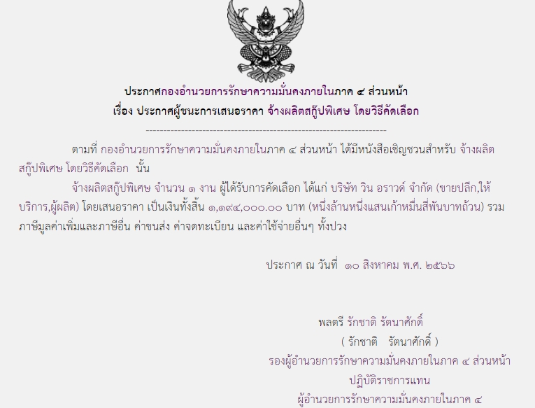 จัดซื้อ จัดจ้างประกาศผู้ชนะการเสนอราคา ประกาศผู้ชนะการเสนอราคา จ้างผลิตสกู๊ปพิเศษ โดยวิธีคัดเลือก August 10, 2023 462 Share Facebook Twitter Google+ Telegram LINE