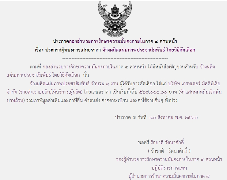 ประกาศผู้ชนะการเสนอราคา จ้างผลิตแผ่นภาพประชาสัมพันธ์ โดยวิธีคัดเลือก