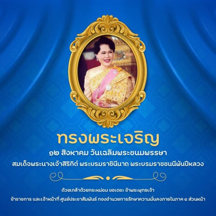 ประชาสัมพันธ์ข่าวประชาสัมพันธ์ เนื่องในโอกาสวันเฉลิมพระชนมพรรษา สมเด็จพระนางเจ้าสิริกิติ์ พระบรมราชินีนาถ พระบรมราชชนนีพันปีหลวง ๑๒ สิงหาคม ๒๕๖๖ August 12, 2023 1405 Share Facebook Twitter Google+ Telegram LINE ขอพระองค์ทรงพระเจริญ ด้วยเกล้าด้วยกระหม่อม ขอเดชะ ข้าพระพุทธเจ้า ข้าราชการ และเจ้าหน้าที่ศูนย์ประชาสัมพันธ์ กองอำนวยการรักษาความมั่นคงภายในภาค ๔ ส่วนหน้า ศูนย์ประชาสัมพันธ์กองอำนวยการรักษาความมั่นคงภายในภาค๔ส่วนหน้า