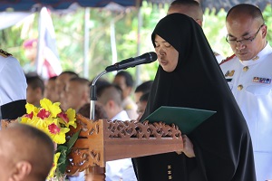 ขณะที่มีการอัญเชิญดินพระราชทานถึงบริเวณพิธี ญาติและข้าราชการตั้งแถวรับดินพระราชทานโดยเจ้าหน้าที่ จากนั้นประธานในพิธีฯได้อัญเชิญดินพระราชทานวางบนหลุมฝังศพของทหารกล้าที่เสียชีวิต ด้านผู้นำศาสนาอ่านอัลฟาตีฮะ ร่วมสวดดูอาร์ และผู้เข้าร่วมในพิธีต่างยืนสงบนิ่งเพื่อไว้อาลัยแก่ทหารกล้าที่เสียชีวิต ซึ่งในพิธีมีกองทหารเกียรติยศพลแตร เป่าแตรเคารพ 1 จบ เป็นสัญญานแสดงวันอันเหน็ดเหนื่อยได้ผ่านพ้นไปแล้ว เพื่อเชิดชูเกียรติถึงความกล้าหาญเสียสละของทหารผู้กล้าที่ปฎิบัติหน้าที่ได้อย่างสมเกียรติจนวาระสุดท้าย ซึ่งการได้รับพระราชทานดินฝังศพในครั้งนี้สร้างความปลาบปลื้ม และซาบซึ้งในพระมหากรุณาธิคุณแก่ครอบครัวทหารกล้าที่เสียชีวิตเป็นล้นพ้น โดยมี นางสาวดารีซะ สมาแอ ผู้เป็นมารดาอ่านสำนึกในพระกรุณาธิคุณ และร้อยโท อภิเชษฐ์ อินทไทร เป็นผู้บังคับบัญชา อ่านประวัติทหารกล้าที่เสียชีวิต ท่ามกลางความปลาบปลื้มแด่ญาติและครอบครัวที่ต่างซาบซึ้งในพระมหากรุณาธิคุณ ที่พระบาทสมเด็จพระปรเมนทรรามาธิบดีศรีสินทร มหาวชิราลงกรณ พระวชิรเกล้าเจ้าอยู่หัว ทรงมีต่อครอบครัวทหารกล้าที่เสียชีวิต