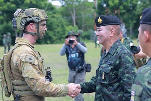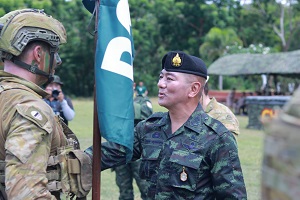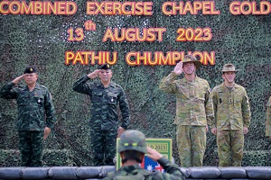 วันนี้ (13 สิงหาคม 2566) เวลา 11.00 น. ที่ สนามโรงเรียนบ้านถ้ำธง อำเภอปะทิว จังหวัดชุมพร พลโท ศานติ ศกุนตนาค แม่ทัพภาคที่ 4 พร้อมด้วย พลตรี สก๊อต วินเทอ ผู้บัญชาการกองพลที่ 1 ออสเตรเลีย ร่วมเป็นประธานในพิธีปิดการฝึกผสมระหว่างกองทัพบกไทย และกองทัพบกออสเตรเลีย ภายใต้รหัส “Chapel Gold 2023” โดยการฝึกดังกล่าวมีวัตถุประสงค์ เพื่อพัฒนาขีดความสามารถ และเพิ่มพูนทักษะในการปฏิบัติการทางทหารร่วมกัน แลกเปลี่ยนความรู้และประสบการณ์การฝึกทางทหาร ขนบธรรมเนียม ประเพณี และวัฒนธรรม ระหว่าง 2 กองทัพ รวมทั้ง ยังเป็นการกระชับความสัมพันธ์ และเสริมสร้างความร่วมมือทางด้านความมั่งคงระหว่างกองทัพบกไทย และกองทัพบกเครือรัฐออสเตรเลีย