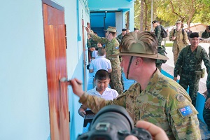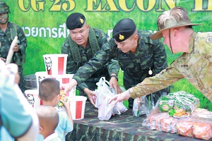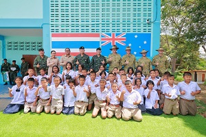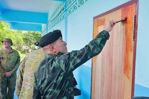 จากนั้น แม่ทัพภาคที่ 4 ได้เดินทางร่วมกิจกรรมสัมพันธ์ cimic project ร่วมกับคณะครูอาจารย์นักเรียนโรงเรียนบ้านถ้ำธง และคณะกองทัพบกออสเตรเลีย ซึ่งภายในกิจกรรมได้ร่วมปรับปรุงพัฒนาทาสีอาคารเรียน ห้องเรียนที่ชำรุดทรุดโทรมให้มีความคงทนแข็งแรง รองรับนักเรียนในชุมชนหมู่บ้านถ้ำธงได้ พร้อมกันนี้ได้มอบของที่ระลึกแก่คณะครู เจ้าหน้าที่ ตลอดจนแจกขนม ไอศกรีมให้กับนักเรียนแทนการขอบคุณในการเป็นเจ้าบ้านพื้นที่การฝึกอีกด้วย