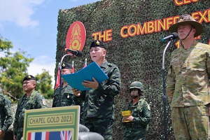 พลตรี สก๊อต วินเทอ ผู้บัญชาการกองพลที่ 1 ออสเตรเลีย กล่าวว่า “ยินดีอย่างยิ่งที่ได้ร่วมกับแม่ทัพภาคที่ 4 ปิดการฝึกครั้งนี้ ตลอดการฝึกที่ผ่านมาทุกภาคส่วนมีส่วนร่วมอันสำคัญถือเป็นประวัติศาสตร์ การฝึก Chapel Gold ที่มีมายาวนานด้านความมั่นคง และสร้างความแน่นแฟ้น ความมีมิตรภาพของทั้งสองกองทัพ ในปีนี้และที่ผ่านมามิตรภาพในการปฏิบัติงานร่วมกัน ได้เสริมสร้างการฝึกแลกเปลี่ยนประสบการณ์ผ่านการฝึก Chapel Gold อย่างครอบคลุม พวกเรายังได้แลกเปลี่ยนประสบการณ์จากการปฏิบัติการ เรียนรู้หลายๆอย่าง จากการปฏิบัติงานของกองทัพบกไทยในพื้นที่ภาคใต้ ตลอด 2 สัปดาห์ที่ผ่านมา เราได้ร่วมฝึก ร่วมเล่นกีฬา ร่วมรับประทานอาหาร นั่นคือมิตรภาพอันดีและได้เรียนรู้วัฒนธรรมต่างๆ กิจกรรมต่างๆ ที่สำคัญคือเราได้เรียนรู้วัฒนธรรมไทย และความมีน้ำใจของพี่น้องประชาชนในพื้นที่ ซึ่งเราจะจดจำไปอีกนานแสนนาน ในนามของกองทัพบกออสเตรเลีย และทหารกองร้อย Battle worth ขอขอบคุณกองทัพบกไทย บุคลากร เจ้าหน้าที่ ในการสนับสนุนและต้อนรับ ตลอดจนไมตรีอย่างดี ถือเป็นการดำรงความสัมพันธ์อันดีต่อเนื่องไปจนถึงการฝึกในรอบปีหน้า และตลอดไป”