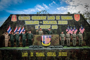 โดยก่อนพิธีปิดการฝึกได้รับชมการสาธิตการฝึกทบทวนการรบในพื้นที่สิ่งปลูกสร้าง ซึ่งเป็นการฝึกร่วมผสมทางบกไทย – มาเลเซีย พร้อมแลกเปลี่ยนที่ระลึกให้แก่กันก่อนมอบธงฝึก LAND EX THAMAL ให้กับประธานฝ่ายมาเลเซีย เนื่องจากในปีต่อไปมาเลเซียจะเป็นเจ้าภาพในการฝึก LAND EX THAMAL ครั้งที่ 27 ประจำปี 2567