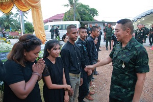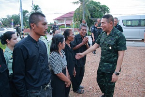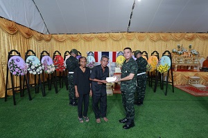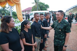 พร้อมกันนี้ แม่ทัพภาคที่ 4 ได้พูดคุยกล่าวแสดงความเสียใจกับครอบครัว ก่อนมอบเงินช่วยเหลือในเบื้องต้น โดยเน้นย้ำหน่วยที่เกี่ยวข้องให้การสนับสนุนดูแลครอบครัวของผู้เสียชีวิตอย่างดีที่สุด พร้อมอำนวยความสะดวกและประสานงานด้านต่าง ๆ ที่เกี่ยวข้องกับผู้เสียชีวิตให้สมเกียรติ รวมถึงผู้บาดเจ็บให้มีความเรียบร้อย นอกจากนี้ ได้สั่งการให้เจ้าหน้าที่ทุกฝ่ายเร่งสืบสวนรวบรวมหลักฐาน เพื่อนำมาเป็นข้อมูลในการติดตามตัวผู้ก่อเหตุมาดำเนินคดีตามกฎหมายโดยเร็ว อย่างไรก็ตามกองทัพบกขอแสดงความเสียใจกับครอบครัวของ อาสาสมัครทหารพราน อุดมศักดิ์ เราตะพงษ์ ที่ได้สูญเสียบุคคลอันเป็นที่รัก