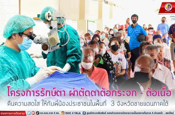 เมื่อวันที่ 19 – 20 สิงหาคม 2566 เวลา 09.00 น. โรงพยาบาลค่ายอิงคยุทธบริหาร ดำเนินการตรวจรักษาโรคทางจักษุกรรม ผู้ที่มีปัญหาด้านสายตา ตาพร่ามัว ตามโครงการ “รักษ์ตา” ครั้งที่ 2 ณ โรงพยาบาลค่ายอิงคยุทธบริหาร ตำบลบ่อทอง อำเภอหนองจิก จังหวัดปัตตานีรวมถึงให้บริการผ่าตัดตาต้อกระจก ต้อเนื้อ โดยไม่มีค่าใช้จ่าย (ฟรี) ให้กับประชาชนในพื้นที่ 3 จังหวัดชายแดนภาคใต้ ซึ่งมีผู้เข้ารับการผ่าตัด จำนวน 78 ราย เพื่อให้การดำเนินงานด้านสาธาณสุขเป็นไปตามเป้าหมาย เพิ่มการเข้าถึงบริการ ลดระยะการรอคอยการผ่าตัด ลดภาวะตาบอดจากต้อกระจก เพิ่มคุณภาพชีวิตการมองเห็น คืนความสดใส ให้กับพี่น้องประชาชนในพื้นที่ 3 จังหวัดชายแดนภาคใต้