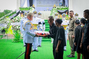 วันที่ 21 สิงหาคม 2566 เวลา 15.00 น. ณ เมรุวัดนพคุณ ตำบลบางนบ อำเภอหัวไทร จังหวัดนครศรีธรรมราช พลเอก ณรงค์พันธ์ จิตต์แก้วแท้ ผู้บัญชาการทหารบก เป็นประธานในพิธี พระราชทานเพลิงศพ อาสาสมัครทหารพราน อุดมศักดิ์ เราตะพงษ์ เจ้าหน้าที่ทหารพรานชุดช่าง สังกัดกองร้อยทหารพรานที่ 4901 หน่วยเฉพาะกิจกรมทหารพรานที่ 49 ซึ่งเสียชีวิตจากเหตุระเบิด ขณะกำลังสร้างบ้านให้กับประชาชน ตามโครงการหน่วยเฉพาะกิจนรา ซ่อมสร้างปันสุข ณ บ้านเลขที่ 84/2 หมู่ที่ 2 บ้านตะโล๊ะ ตำบลซากอ อำเภอศรีสาคร จังหวัดนราธิวาส เมื่อวันที่ 17 สิงหาคม 2566 ที่ผ่านมา โดยมี พลโท ศานติ ศกุนตนาค แม่ทัพภาคที่ 4 / ผู้อำนวยรักษาความมั่นคงภายในภาค 4 ผู้บังคับบัญชา กำลังพลเพื่อนทหาร รวมไปถึงคณะญาติและพี่น้องประชาชนในพื้นที่ ร่วมพิธีแสดงความไว้อาลัยต่อวีรชนผู้กล้าเป็นครั้งสุดท้าย