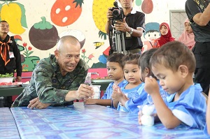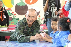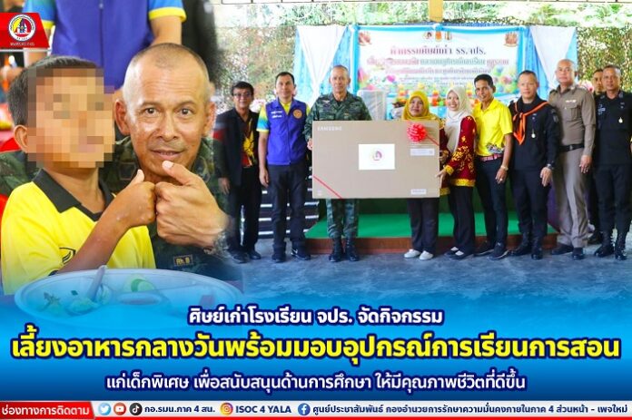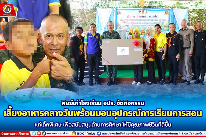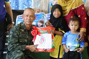 พลตรี เฉลิมพร ขำเขียว ผู้บังคับหน่วยเฉพาะกิจนราธิวาส กล่าวว่า การจัดกิจกรรมในวันนี้ สืบเนื่องจากพลโท ศานติ ศกุนตนาค แม่ทัพภาคที่ 4/ผู้อำนวยการรักษาความมั่นคงภายในภาค 4 ในนามศิษย์เก่าโรงเรียนนายร้อยพระจุลจอมเกล้า (รร.จปร.) ได้รับทราบว่าศูนย์ฯ แห่งนี้มีความต้องการสื่อการเรียนการสอนเพื่อนำไปสู่การพัฒนาในด้านร่างกายและจิตใจ โดยเฉพาะเด็กพิเศษให้ได้รับการพัฒนาเต็มตามศักยภาพ ทั้งนี้เพื่อพัฒนาคุณภาพชีวิตที่ดีขึ้น ท่านแม่ทัพภาคที่ 4 ให้ความสำคัญกับการส่งเสริม สนับสนุน พัฒนาด้านการศึกษา ได้มอบงบประมาณและมอบหมายให้ตนนำความตั้งใจมาให้เกิดประโยชน์ อีกทั้งขอขอบคุณครูผู้ดูแลเด็ก ต้องใช้ความตั้งใจ ความอดทน พร้อมฝากถึงครอบครัวด้วยว่า การดูแลเด็กเล็ก/เด็กพิเศษ ต้องช่วยกันทั้งบ้าน และโรงเรียน เพื่อพัฒนาเด็กไปอย่างมีประสิทธิภาพ
