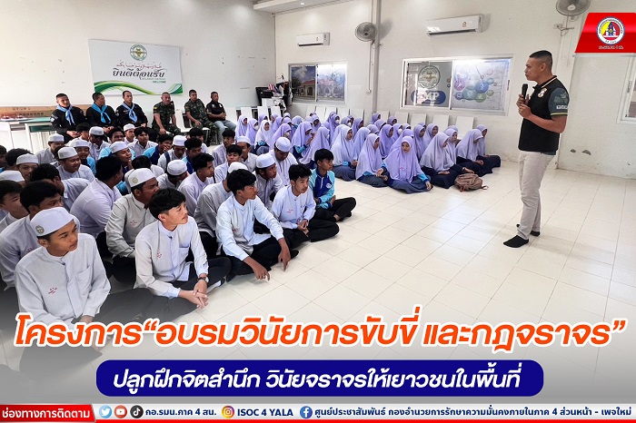 เมื่อวันที่ 27 สิงหาคม 2566 เวลา 09.00 น. ที่ โรงเรียนคัมภีร์วิทยา บ้านบาโงสโต หมู่ที่ 9 ตำบลบันนังสตา อำเภอบันนังสตา จังหวัดยะลา ชุดสันติสุขที่ 306 ร่วมกับ ชุดทักษิณสัมพันธ์ที่ 302 หน่วยเฉพาะกิจสันติสุข, กองร้อยทหารพรานที่ 3007 หน่วยเฉพาะกิจกรมทหารพรานที่ 30 ได้รับเกียรติจากวิทยากรของ สถานีตำรวจภูธรอำเภอบันนังสตา โดย พันตำรวจโท กิตติทัศน์ กันฉาย (รองผู้กำกับการป้องกันปราบปราม สถานีตำรวจภูธรอำเภอบันนังสตา) มาดำเนินการอบรมให้ความรู้เกี่ยวกับวินัยการจราจร และการขับขี่อย่างปลอดภัย และอธิบายถึงปัญหาการจราจรและความปลอดภัยบนท้องถนน ทั้งภาคทฤษฎีและภาคปฏิบัติ เพื่อเผยแพร่ข่าวสารความรู้ความเข้าใจและปลูกฝึกจิตสำนึก วินัยจราจร รวมทั้งการใช้รถใช้ถนนอย่างปลอดภัยให้กับบุคลากรครู และนักเรียนโรงเรียนคำภีร์วิทยา เพื่อให้เกิดความร่วมมือ และมุ่งเน้นที่กลุ่มเยาวชน ที่ต้องทำการรณรงค์ประชาสัมพันธ์ทุกรูปแบบ รวมทั้งการอบรมให้ความรู้เพื่อป้องกันปัญหาอุบัติเหตุทางถนนอย่างต่อเนื่องและเป็นรูปธรรม ซึ่งมีจำนวนผู้เข้าร่วมกิจกรรม 90 คน และเชิญชวนร่วมทำกิจกรรมคอนเทนต์ WE ARE THAI (เรา คือ ไทย) ในครั้งนี้