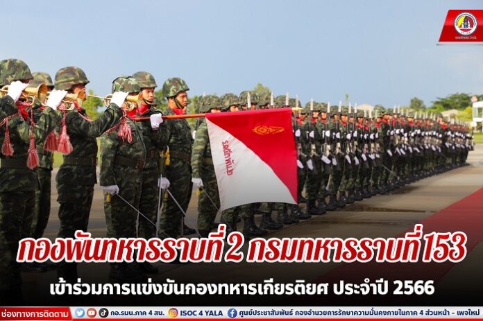 เมื่อวันที่ 30 สิงหาคม 2566 เวลา 16.00 น. พันโท ไพร บุญเลี้ยง ผู้บังคับกองพันทหารราบที่ 2 กรมทหารราบที่ 153 พร้อมกำลังพลกองทหารเกียรติยศ ประกอบด้วย หมวดกองทหารเกียรติยศ, หมู่แตรเดี่ยว และหมู่เชิญธง เข้ารับการแข่งขันกองทหารเกียรติยศ ระดับ มณฑลทหารบก ประจำปี 2566ณ ลานพื้นแข็ง ศาลาสุริโยทัย ค่ายสมเด็จพระสุริโยทัย กองพลทหารราบที่ 15 ตำบลบ่อทอง อำเภอหนองจิก จังหวัดปัตตานี เพื่อคัดเลือกหน่วยที่ชนะเลิศเป็นตัวแทนเข้ารับการแข่งขันระดับ กองทัพภาคที่ 4 ต่อไป โดยมีเกณฑ์การประเมิน ดังนี้