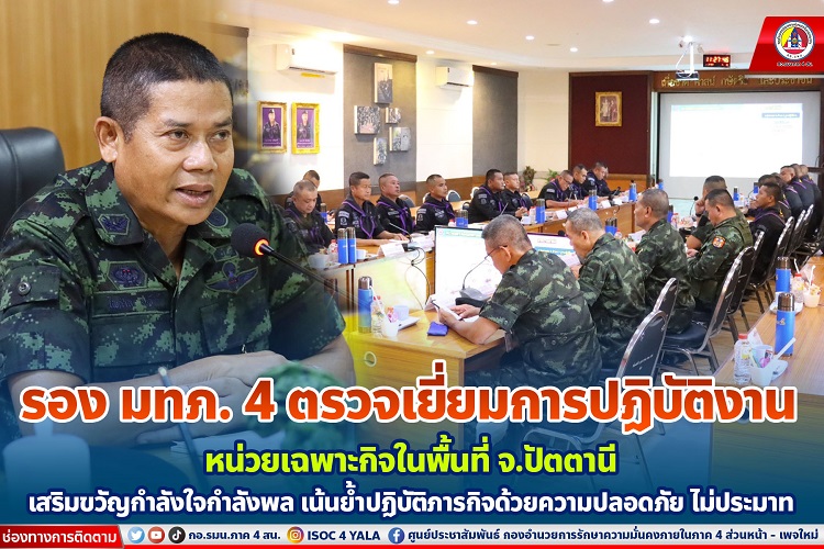 พลตรี ไพศาล หนูสังข์ รองแม่ทัพภาคที่ 4 / รองผู้อำนวยการรักษาความมั่นคงภายในภาค 4 ส่วนหน้า ได้กล่าวเน้นย้ำให้กำลังพลของหน่วยฯ มีการปรับแผนการปฏิบัติงานให้มีความรัดกุม ทั้งในมาตราการเชิงรุก และมาตราการเชิงรับ ปฏิบัติงานด้วยความระมัดระวัง ไม่ประมาท ทั้งการรักษาความปลอดภัยเส้นทางหลัก เส้นทางรอง รวมทั้งอำนวยความสะดวกแก่พี่น้องประชาชนในพื้นที่ และต้องปฏิบัติด้วยความจริงใจ อีกทั้งนำการปฏิบัติ 5 งานสำคัญตามนโยบายของ พลโท ศานติ ศกุนตนาค แม่ทัพภาคที่ 4 / ผู้อำนวยการรักษาความมั่นคงภายในภาค 4 โดยให้ยึดถือ ปฏิบัติเป็นไปในทิศทางเดียวกันให้มีประสิทธิภาพ และมีการซักซ้อมแผนเผชิญเหตุอย่างสม่ำเสมอ ตลอดจนการบูรณาการทำงานร่วมกับทุกภาคส่วนที่เกี่ยวข้องเพื่อให้ภารกิจสำเร็จลุล่วง เพราะนอกเหนือจากการดูแลความปลอดภัยในพื้นที่แล้วการส่งเสริมการพัฒนาคุณภาพชีวิต เพื่อให้ประชาชนมีความเป็นอยู่ที่ดีขึ้นอีกด้วย