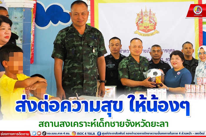 พลโท ศานติ ศกุนตนาค แม่ทัพภาคที่ 4 / ผู้อำนวยการรักษาความมั่นคงภายในภาค 4 มีดำริในพิธีน้อมรำลึกพระมหากรุณาธิคุณในพระบาทสมเด็จพระจุลจอมเกล้าเจ้าอยู่หัว เนื่องในวันพระราชทานกำเนิด โรงเรียนนายร้อยพระจุลจอมเกล้า (รร.จปร.) ครบรอบ 136 ปี โดยได้มอบหมายให้ พลตรี ธนัช ฉิมพาลี ผู้บังคับหน่วยเฉพาะกิจยะลา เป็นผู้แทน ในการจัดกิจกรรมเลี้ยงอาหารกลางวัน/ไอศกรีม ณ สถานสงเคราะห์เด็กชายจังหวัดยะลา อำเภอเมือง จังหวัดยะลา พร้อมทั้งสนับสนุนเครื่องอุปโภคบริโภค ที่จำเป็นในชีวิตประจำวันให้กับเด็กและเยาวชนได้นำไปใช้ประโยชน์ในการดูแลเด็ก ให้มีคุณภาพชีวิตที่ดีขึ้น ทั้งด้านร่างกายและจิตใจ ต่อไป ซึ่งบรรยากาศอบอวลไปด้วยความสุข สนุกสนาน จากรอยยิ้มของน้องๆ ในสถานสงเคราะห์เด็กชายเป็นอย่างมาก