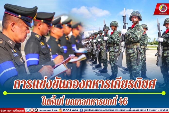มณฑลทหารบกที่ 46 จัดการประเมินผลการแข่งขันกองทหารเกียรติยศ ภายในกองทัพบก ประจำปี 2566 ณ ลานพื้นแข็ง กองพลทหารราบที่ 15 ค่ายสมเด็จพระสุริโยทัย ตำบลบ่อทอง อำเภอหนองจิก จังหวัดปัตตานี พื้นที่มณฑลทหารบกที่ 46 โดยมีกองทหารเกียรติยศเข้าร่วมการแข่งขัน จำนวน 9 กองพัน ประกอบด้วย กองพันทหารราบที่ 1 กรมทหารราบที่ 151, กองพันทหารราบที่ 2 กรมทหารราบที่ 151, กองพันทหารราบที่ 3 กรมทหารราบที่ 151, กองพันทหารราบที่ 1 กรมทหารราบที่ 152, กองพันทหารราบที่ 2 กรมทหารราบที่ 152, กองพันทหารราบที่ 3 กรมทหารราบที่ 152, กองพันทหารราบที่ 1 กรมทหารราบที่ 153, กองพันทหารราบที่ 2 กรมทหารราบที่ 153 และ กองพันทหารราบที่ 3 กรมทหารราบที่ 153 โดยคณะกรรมการประเมินผล จาก มณฑลทหารบกที่ 46 ดำเนินการคัดเลือกหน่วยที่มีผลการประเมินดีเยี่ยม ปฏิบัติตามขั้นตอนถูกต้องเหมาะสม มีความพร้อมเพรียง เข็มแข็ง และสมพระเกียรติ เป็นตัวแทนเข้าแข่งขันในระดับกองทัพภาคที่ 4 และในระดับกองทัพบกต่อไป