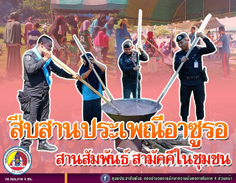 ทั้งนี้ ประเพณี “ อาซูรอ” เป็นกิจกรรมเพื่อสืบสานประเพณี และเป็นการสัมพันธ์ ความสมัครสมานสามัคคีของประชาชนภายในชุมชน เพื่อเป็นการเสริมสร้างสัมพันธ์ ความเข้าใจภายในชุมชนสังคมพหุวัฒนธรรม อีกทั้งเป็นการเสริมสร้างภาพลักษณ์ที่ดีระหว่างเจ้าหน้าที่ กับประชาชน