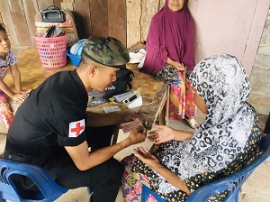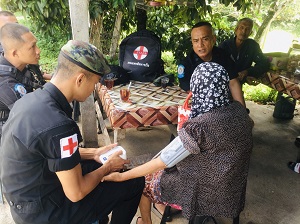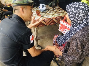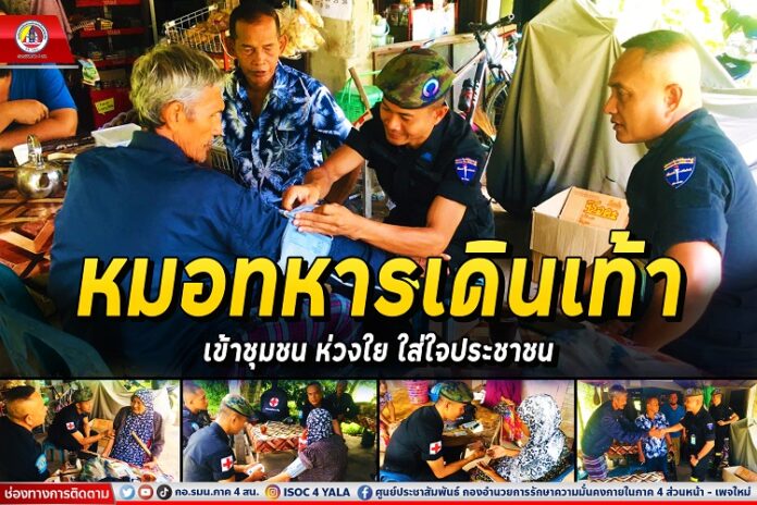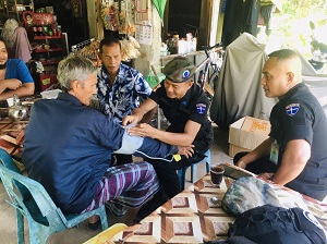 เมื่อวันที่ 5 กันยายน 2566 เวลา 09.00 น. กองร้อยทหารพรานนาวิกโยธินที่ 7 หน่วยเฉพาะกิจนาวิกโยธินกองทัพเรือ และเจ้าหน้าที่พยาบาลประจำกองร้อย ร่วมกับผู้นำชุมชน เดินเท้าเข้าชุมชน พบปะเยี่ยมเยียนผู้สูงอายุบริเวณรอบฐานปฏิบัติการ ณ ร้านน้ำชา บ้านโคะ หมู่ที่ 5 ตำบลจอเบาะ อำเภอยี่งอ จังหวัดนราธิวาส โดยได้ทำการตรวจสุขภาพ พร้อมแนะนำวิธีการดูแลรักษาสุขภาพเบื้องต้น และแจกจ่ายยาสามัญประจำบ้านให้กับผู้สูงอายุ เพื่อสร้างความสัมพันธ์ที่ดีระหว่างเจ้าหน้าที่กับประชาชนในพื้นที่