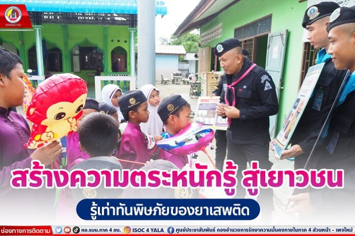 นอกจากนี้ เจ้าหน้าที่ทหารพรานยังได้ประชาสัมพันธ์สร้างความรู้ความเข้าใจที่ถูกต้อง ให้เยาวชนได้รู้เท่าทันถึงพิษภัยของยาเสพติดและมีความตระหนักรู้ร่วมกันในสังคม ไม่เข้าไปยุ่งเกี่ยวกับยาเสพติดซึ่งเป็นสิ่งที่มีโทษพิษภัยต่อร่างกาย และมีผลกระทบทำลายครอบครัว ชุมชน และความมั่นคงของประเทศชาติ ตรงกับนโยบายของ พลโท ศานติ ศกุนตนาค แม่ทัพภาคที่ 4 / ผู้อำนวยการรักษาความมั่นคงภายในภาค 4 ซึ่งให้ความสำคัญเร่งด่วนกับการแก้ไขปัญหายาเสพติดในพื้นที่
