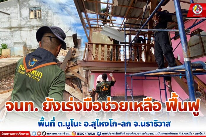 เมื่อวันที่ 6 กันยายน 2566 หน่วยเฉพาะกิจนราธิวาส ร่วมกับ ศูนย์บรรเทาสาธารณภัยกรมทหารราบที่ 151 และหน่วยขึ้นตรง ระดมกำลังเข้าช่วยเหลือผู้ประสบภัยจากกรณีเหตุโกดังประทัดระเบิด ในพื้นที่ ต.มูโนะ อ.สุไหงโก-ลก จ.นราธิวาส ตั้งแต่เมื่อวันที่ 29 กรกฎาคม 2566 จนถึงปัจจุบัน โดยได้จัดชุดประสานการปฏิบัติ และเข้าช่วยเหลือฟื้นฟูพื้นที่ ร่วมกับกำลังพลจิตอาสา (ร.151) ดำเนินการซ่อมแซมบ้าน ประชาชนผู้ได้รับผลกระทบ แล้วเสร็จ จำนวน 1 หลังคาเรือน และ บ้านเรือนประชาชน ยังไม่แล้วเสร็จ 3 หลัง ตลอดจนจัดกำลังพลร่วมทำความสะอาดบ้านเรือนประชาชน ที่ได้รับผลกระทบ