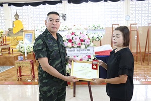 โอกาสนี้ แม่ทัพภาคที่ 4 / ผู้อำนวยการรักษาความมั่นคงภายในภาค 4 ได้วางหรีดเคารพศพในนามของ นายเศรษฐา ทวีสิน นายกรัฐมนตรี ในฐานะผู้อำนวยการรักษาความมั่นคงภายในราชอาณาจักร, นายสุทิน คลังแสง รัฐมนตรีว่าการกระทรวงกลาโหม , พลเอก ณรงค์พันธ์ จิตต์แก้วแท้ ผู้บัญชาการทหารบก /รองผู้อำนวยการรักษาความมั่นคงภายในราชอาณาจักร และวางพวงหรีดเคารพศพในนามของแม่ทัพภาคที่ 4 / ผู้อำนวยการรักษาความมั่นคงภายในภาค 4 พร้อมกันนี้ ยังมอบเหรียญบางระจันและใบประกาศนียบัตร เพื่อเป็นการประกาศเกียรติคุณ เชิดชูเกียรติ ในการประกอบคุณงามความดีและความเสียสละของผู้เสียชีวิต ก่อนมอบเงินช่วยเหลือเบื้องต้นและแสดงความเสียใจต่อครอบครัวของผู้เสียชีวิต ทั้งนี้มี พลตรี เฉลิมพร ขำเขียว ผู้บัญชาการกองพลทหารราบที่ 15 / ผู้บังคับหน่วยเฉพาะกิจนราธิวาส, นายปรีชา นวลน้อย รองผู้ว่าราชการจังหวัดนราธิวาส,ผู้แทนศูนย์อำนวยการบริหารจังหวัดชายแดนภาคใต้,ผู้บังคับหน่วยเฉพาะกิจยะลา,ผู้บังคับหน่วยเฉพาะกิจกรมทหารพรานที่ 48 ,หัวหน้าส่วนราชการ ทหาร ตำรวจ ร่วมพิธีฯ