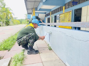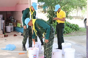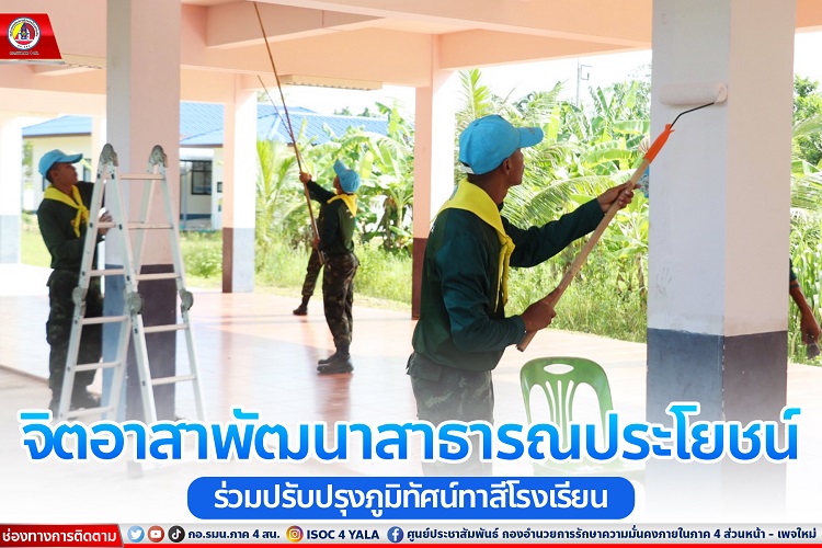 เมื่อวันที่ 8 กันยายน 2566 เวลา 10.00 น. พันเอก เอกวริทธิ์ ชอบชูผล ผู้บังคับกองพันมณฑลทหารบกที่ 42 ได้จัดกำลังพลจิตอาสาพัฒนาสาธารณประโยชน์ ร่วมปรับปรุงภูมิทัศน์ทาสี ที่ โรงเรียนรักเมืองไทย 6 (โตนงาช้าง) หมู่ที่ 7 บ้านโตนงาช้าง ตำบลทุ่งตำเสา อำเภอหาดใหญ่ จังหวัดสงขลา โดยร่วมทำกิจกรรมจิตอาสา ปรับปรุงภูมิทัศน์ทำความสะอาด โดยการขูดขัดสีตามอาคารโรงเรียน และทาสีใหม่ ให้มีความสวยงาม เพื่อกระตุ้นให้นักเรียนเกิดความตื่นตัวในการเรียน มากยิ่งขึ้น นักเรียนและผู้ปกครองมีความรักและศรัทธาในโรงเรียนใกล้บ้าน และไว้วางใจ การเรียน การสอนต่อไป โดยมี น้อง ๆนักเรียน และอาจารย์ ร่วมกิจกรรมในครั้งนี้