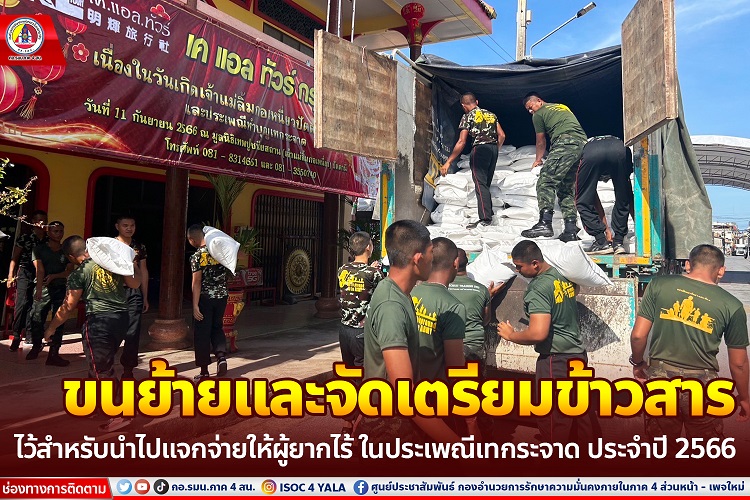 เมื่อวันที่ 8 กันยายน 2566 เวลา 09.00 น. ที่ อาคารมูลนิธิเทพปูชนียสถาน (ศาลเจ้าแม่ลิ้มกอเหนี่ยว) ตำบลอาเนาะรู อำเภอเมือง จังหวัดปัตตานี กองพันทหารราบที่ 2 กรมทหารราบที่ 153 นำกำลังพล ร่วมกับ กำลังพลของ กองพันหน่วยขึ้นตรงกรมทหารราบที่ 153 ร่วมกับ มูลนิธิเทพปูชนียสถาน (ศาลเจ้าเเม่ลิ้มกอเหนี่ยว) ปัตตานี ร่วมกันขนย้ายและจัดเตรียมข้าวสาร จำนวน 1,600 กระสอบ มาเก็บไว้ในอาคารมูลนิธิเทพปูชนียสถาน (ศาลเจ้าเเม่ลิ้มกอเหนี่ยว) ปัตตานี เพื่อจัดเก็บไว้ ก่อนจะนำไปแจกจ่ายในวันที่ 11 กันยายน 2566 เพื่อทำบุญให้ทานกับผู้ยากไร้ ในประเพณีทำบุญเทกระจาด ประจำปี 2566 ซึ่งเป็นประเพณีทำบุญเทกระจาด บริจาคมอบเครื่องอุปโภคบริโภคแก่ผู้ยากไร้โดยเท่าเทียมกันทุกศาสนิก โดยไม่มีการแบ่งเชื้อชาติ ศาสนาใด ๆ
